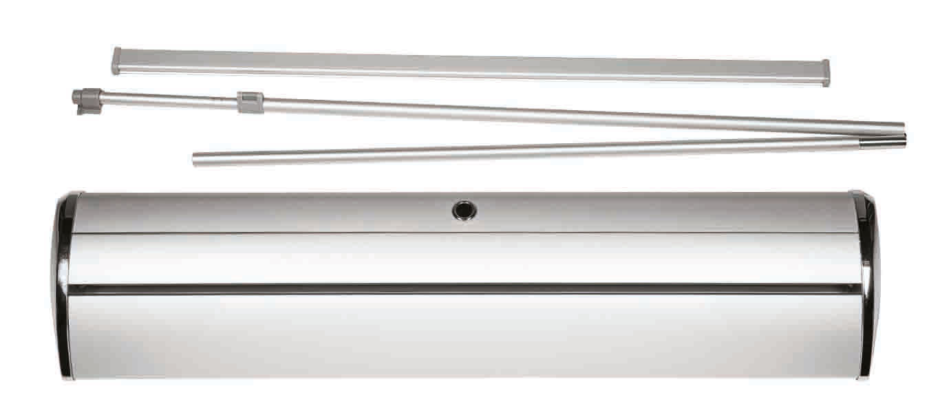 Mit dem Roll-Up Banner von Digital Picture Repro & Medienservice in München erhalten Sie ein Banner aus der Standard-Reihe. Dieser ist Silber eloxiert und kommt mit einer Klemmschiene sowie verchromte Endkappen daher. Die beiden verchromten Endkappen stechen bei diesem System besonders hervor und verleihen Ihnen einen exclusiven Auftritt. Auch für Messen, Events, Ausstellungen, Werbeaktionen und Ähnliches eignet der Roll-Up Banner sich ideal, denn er kann einfach und bequem in der mitgelieferten Transporttasche transportiert werden.