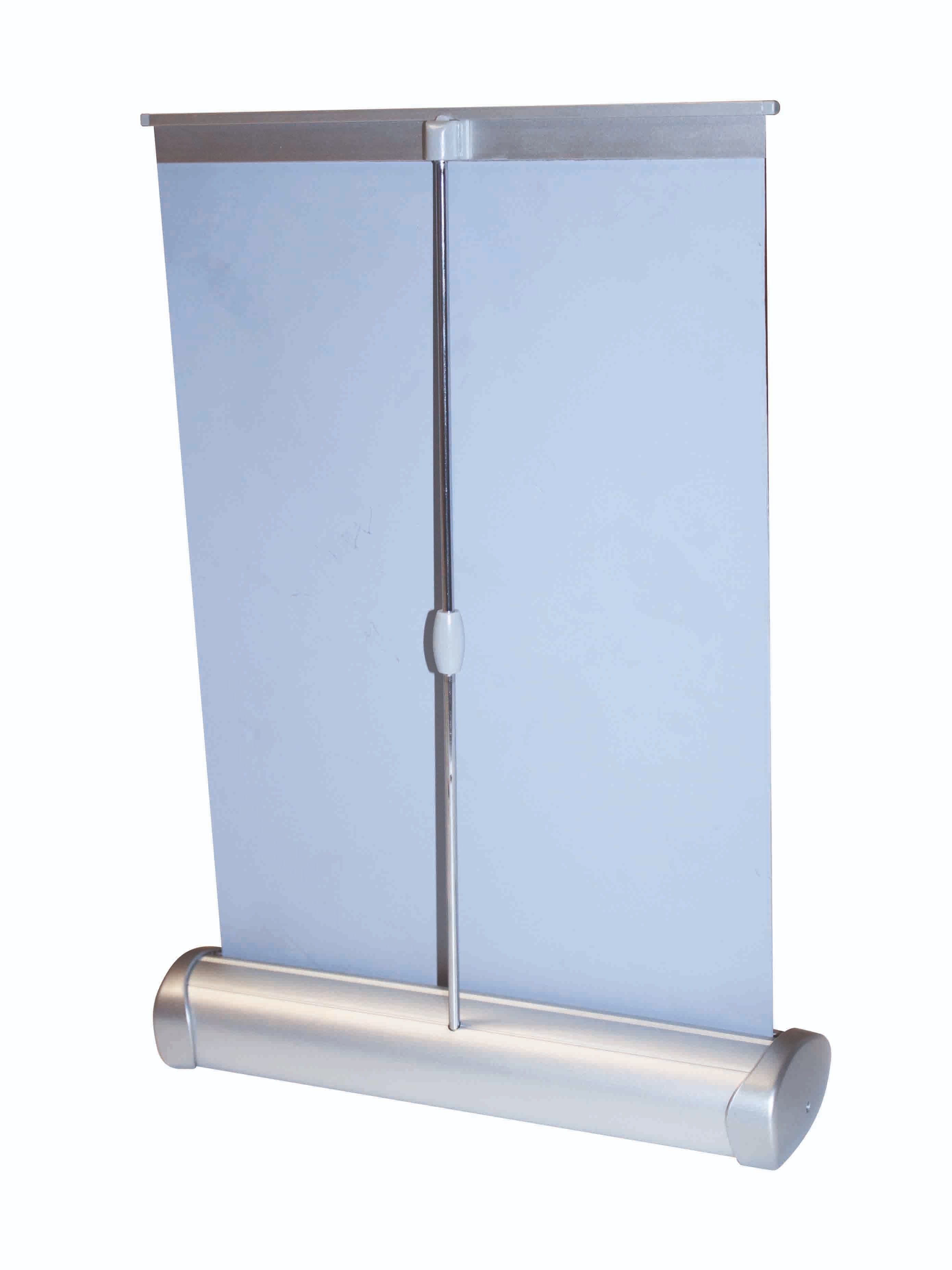Das Roll-Up Mini ist kompakt und daher ideal, um Ihre Werbebotschaft auf Ihrem Schreibtisch, einer Theke oder einer Vitrine zu präsentieren und in den Mittelpunkt zu stellen. Das Rollbanner ist platzsparend, gleichzeitig aber auch sehr effektiv. Auch als Werbegeschenk für Ihre Kunden ist es wegen seiner kleinen Größe ideal geeignet.