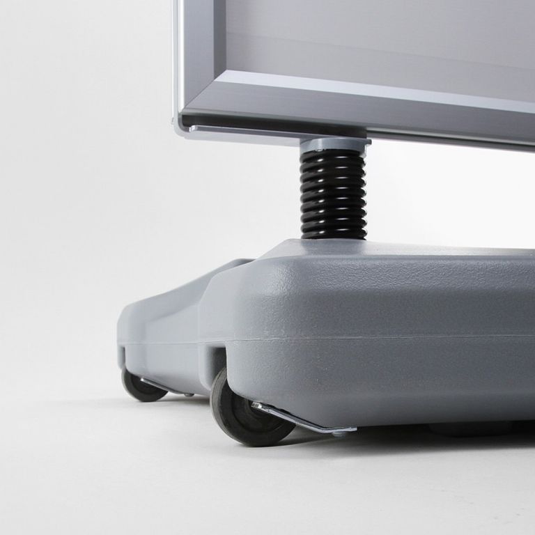 Speziell für Ihre Werbung in windigen Bereichen ist der Kundenstopper WINDTALKER® von Digital Picture Repro & Medienservice in München die optimale Lösung. Sein mit Wasser oder Sand befüllbarer Standfuß bietet in Verbindung mit den Spezialfedern aus Stahl eine hohe Standfestigkeit. Für den einfachen Transport sind im Standfuß Rollen integriert. So können Sie den Kundenstopper trotz des Standgewichtes einfach bewegen. Der Aluminium-Schnellwechselrahmen kann doppelseitig mit Plakaten bestückt werden und garantiert Ihnen auch bei hohen Windstärken eine auffällige Werbemöglichkeit.
