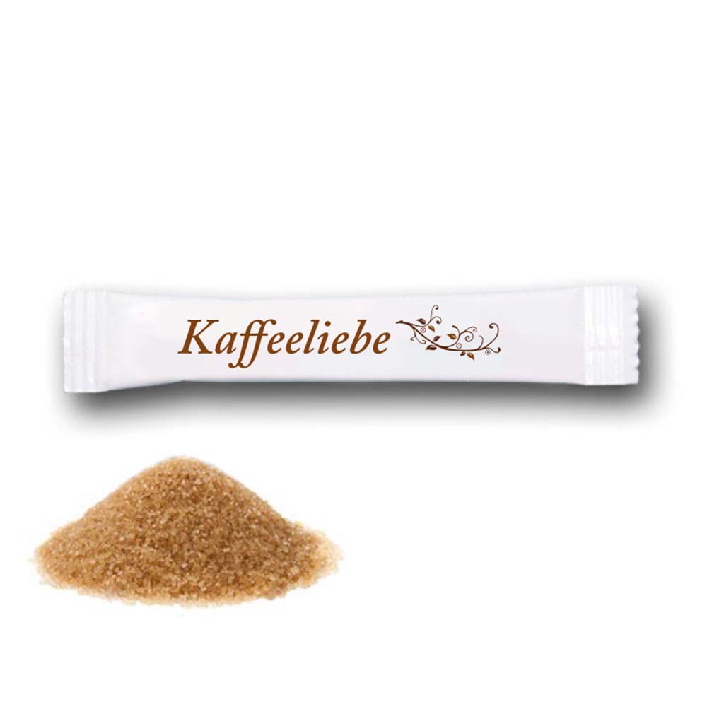 Zuckersticks in Kleinauflage mit braunem Rohrzucker bereits ab 50 Stück - ideal für Ihre Werbung auf Messe und Events, im Lokal, oder als Give-Away.