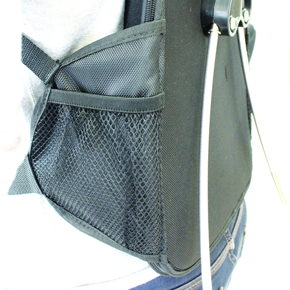 Bestehend aus beschichtetem Nylon dient der Rucksack als robustes und gleichzeitig leichtes Tragegestell für die Fahne. Eine gute Stabilität wird dank dem stabilen Fahnenbefestigungssystem und den verstärkten Gurten erzielt. Trotzdem ist der Rucksack auch bequem zu tragen, dank der komfortablen Polsterung. Der verstellbare Gürtel ermöglicht außerdem, den Rucksack individuell anzupassen. Neben dem Banner können in dem Rucksack in den seitlichen Netztaschen sowie dem Reißverschlussfach auch andere Dinge transportiert werden. In einer praktischen Zusatztasche auf der Trageseite können die Gestänge aufbewahrt werden.