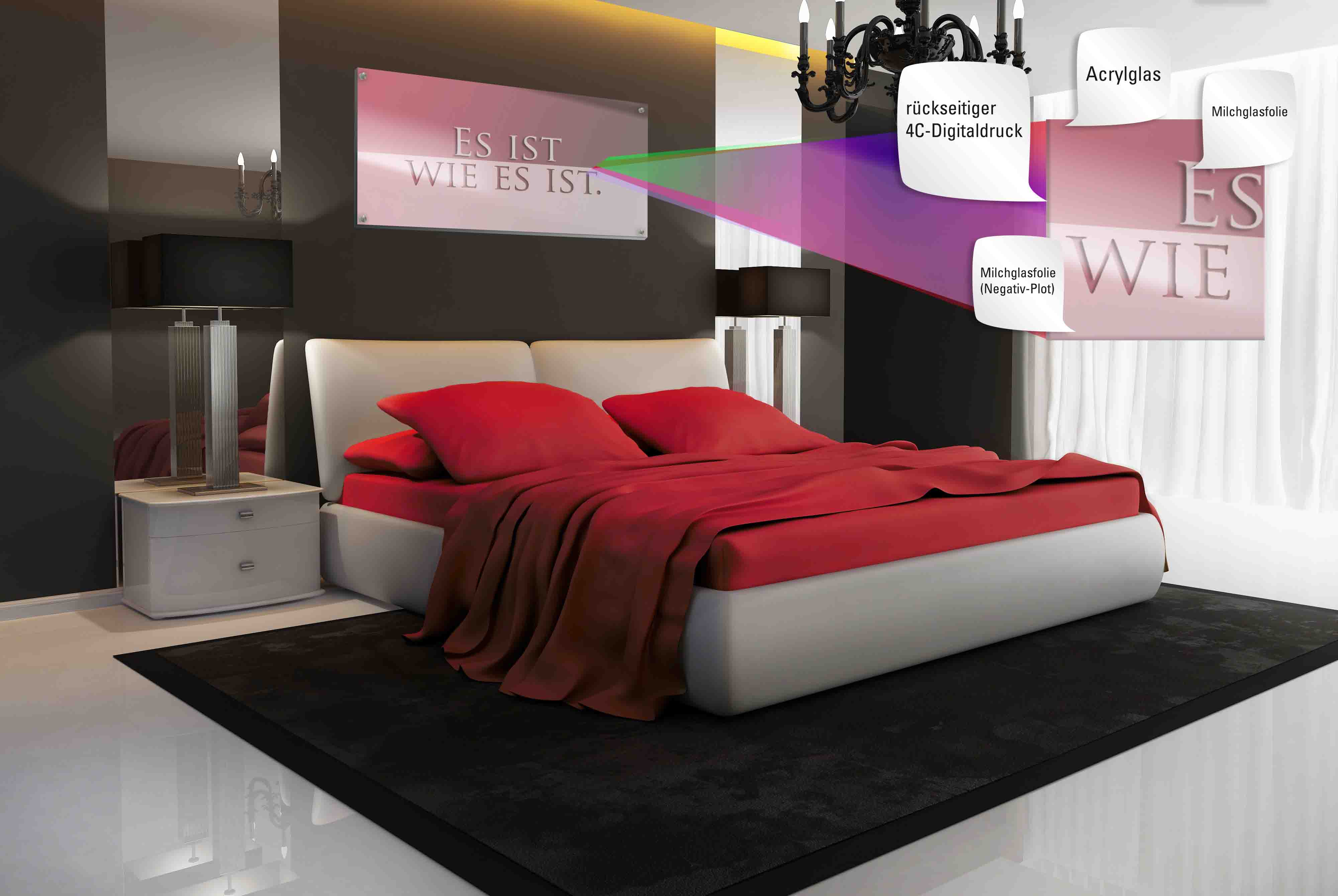 Entweder wird das Acrylglas einseitig 4/0-farbig ohne weiß oder beidseitig 5/0-farbig mit weißer Hinterdruckung bedruckt. Als Schild genutzt können Sie die Acrylglasplatte mit Informationen Ihres Unternehmens bedrucken oder Sie können damit Wege weisen. Zudem kommt das Acrylglas hervorragend zur Geltung wenn es mit einem Bild bedruckt und so als Dekoration genutzt wird, beispielsweise zu Hause, im Büro oder im Wartezimmer.