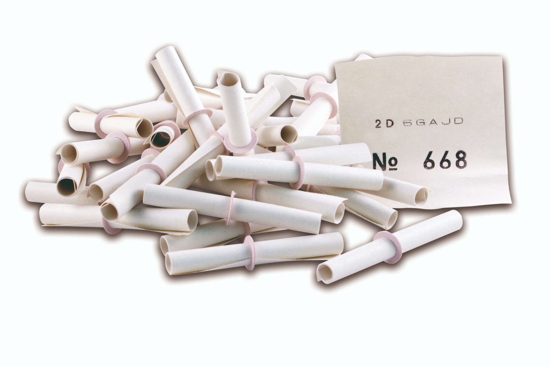 Schon fast 100 Jahre alt, aber noch immer Bestseller - die Röllchenlose von Digital Picture Repro & Medienservice in München. Das liegt sicher an ihrer Einfachheit, am Rascheln in der Losbox und an der Spannung beim Öffnen der Lose.