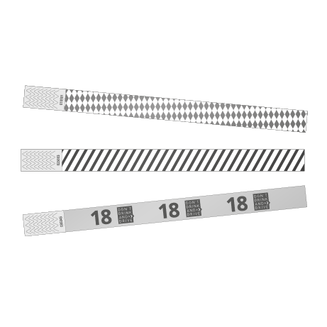 Die praktischen Einlassbänder aus papierähnlichem und reißfestem Tyvek mit vorgefertigten Motiven von Digital Picture Repro & Medienservice in München werden mit einem Klebestreifen verschlossen. Beim Öffnen des Klebestreifens wird die Perforation am Band zerstört. Somit sind unsere Tyvek-Bänder genau so sicher wie Einlassbänder mit Plastik-Verschluss und nicht übertragbar.